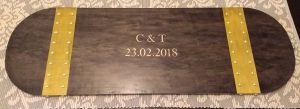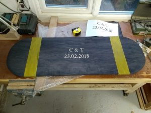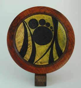 Two of the more artistic items are a large blue hollow form or vase and a carved tazza. The blue hollow form is made from Leylandii, and the opening at the top is big enough to allow my whole hand to fit inside, which in turn allows for much better sanding. This was, in fact, dearly needed, as the wood would not cut cleanly on the inside and I had some terrible tear-out to deal with. I am happy to report that this is now all done, and all that’s needed is some finish. I am a little nervous, to be honest, about that large knot on the shoulder. I made another hollow form not long ago, and it now decided to develop a very long crack right out of its large knot. We’ll have to see.